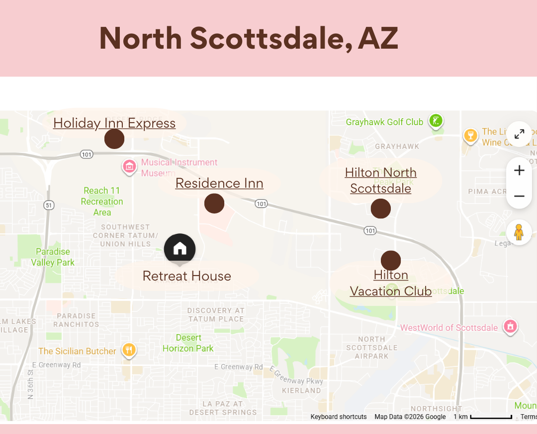 You get all of this with ample downtime to connect with the other ladies, rest, shop, enjoy the pool or other outdoor activities that the area has to offer. All within the beauty and sunshine of Scottsdale, AZ.